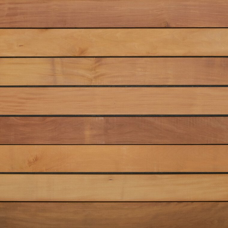 Auch bekannt als südamerikanisches Teak. Warmer rotbrauner Farbton. Das attraktive Holz des Tonka-Baums ist durch den natürliche Wechseldrehwuchs extrem hart und widerstandsfähig und zählt zu den besten Hölzern für den Terrassenbau. CUMARU ist ein Holz der Extraklasse und im Außenbereich, wie auch bei Gartenmöbeln, beliebt.